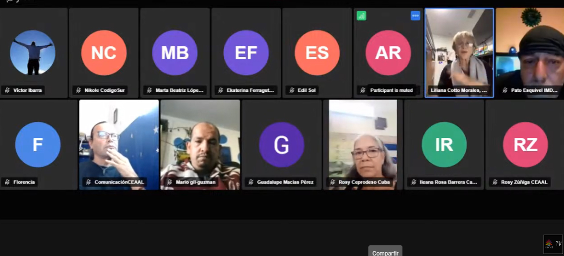 Florencia (CEAAL Puerto Rico): lo que nosotros nos planteamos en Puerto Rico es desarrollar una metodología que a veces le llamamos el esqueleto de la educación popular. a partir de la práctica desarrollar la conceptualización en análisis, volver a la práctica en cualquier contexto, pero queremos que haya una intención política porque si queremos cambiar ese gobierno y eventualmente quisiéramos eliminar el capitalismo y si quisiéramos y si fuera un gobierno socialista que está teniendo algunos errores, también estaríamos en ánimo de hacer crítica, así que es una cuestión de que sí queremos que la gente por un lado analice desde su realidad y comience a hacer sus propias narrativas y también en el proceso se vaya desarrollando algún tipo de que nos lleve algún tipo de cambio de insurgencia de en cuanto al tema del sistema. Eso para los grupos nosotros lo que estamos tratando ahora de hacer una cosa que se llama El Junte, todos los educadores educadores populares, tengo estén o no estén en CEAAL, porque también divulgar la existencia deseada en Puerto Rico es otro proyecto, pero hemos hecho un junte de todos los educadores que hemos conocido y seguimos invitando para tratar de intercambiar las experiencias, pero el eje es que haya intencionalidad política, o sea, porque si no podemos hacer un tremendo trabajo social muy bueno, pero en ese sentido estamos en desventaja con el sistema, porque ellos tienen todo el tipo de asistencialismo posible con paga local y de los federales, así que tenemos que hacer alguna diferencia y realmente yo creo que Ése es el gran reto que tenemos de cómo hacemos esa diferencia.