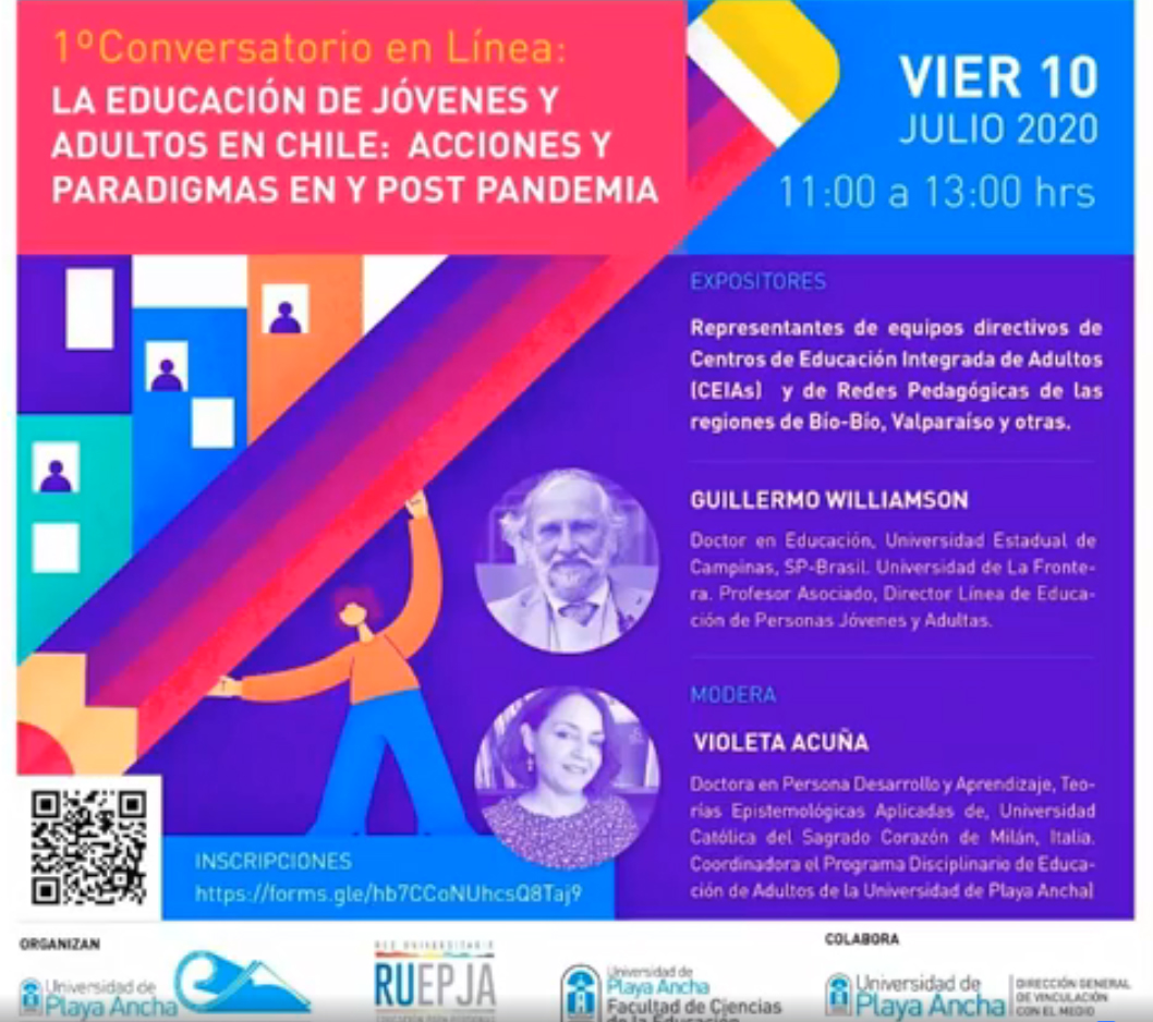 Conversatorio en línea «La EPJA en Chile. Acciones y Paradigmas en y post pandemia». UPLA. Chile.