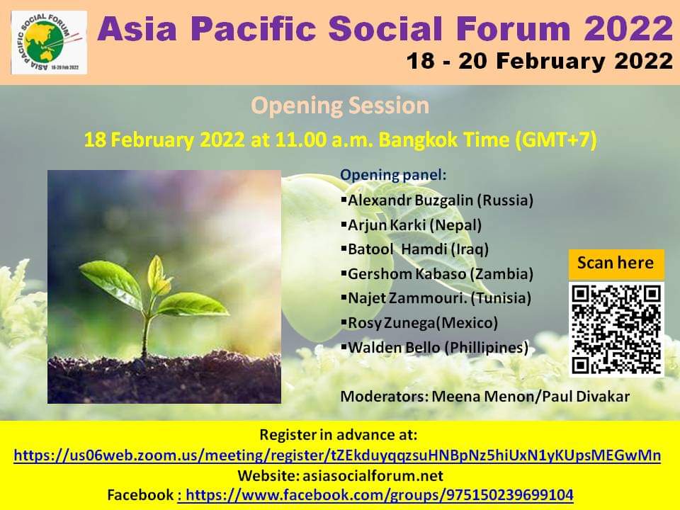 Sesión de Apertura del Asia Pacific Social Forum, que se lleva a cabo del 18 al 20 de febrero.