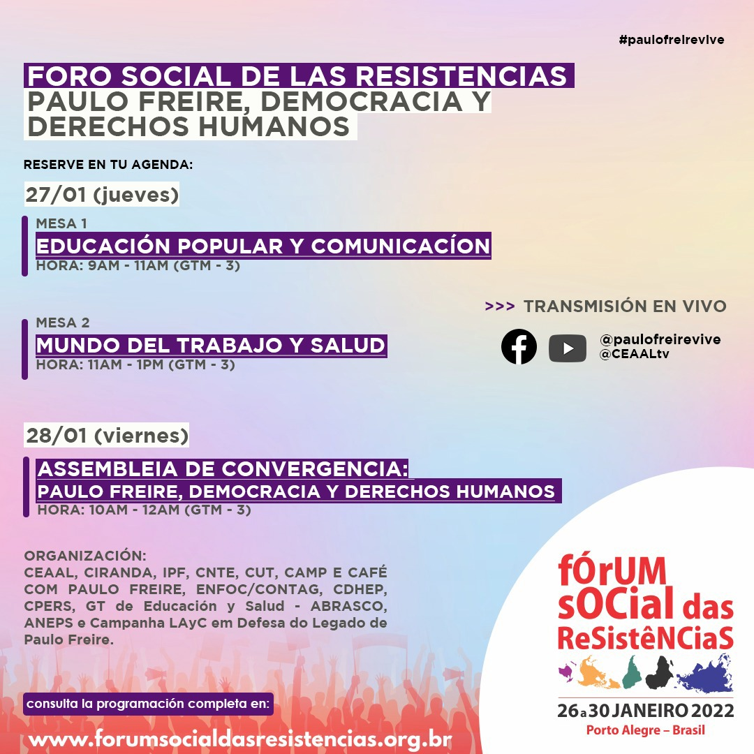 La Convergencia Paulo Freire, Democracia y Derechos Humanos se realizó los días 27 y 28 de enero de 2022, en el Foro Social de la Resistencias.