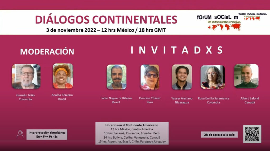 Este 3 de noviembre se llevaron a cabo las Jornadas de Diálogos Continentales, por el Foro Social Mundial.