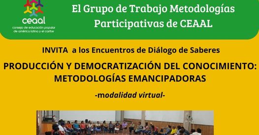 El Grupo de Trabajo de Metodologías Participativas de CEAAL, te invita a seguir la transmisión  del Encuentro de Diálogo de Saberes: Producción y Democratización del Conocimiento: Metodologías Emancipadoras