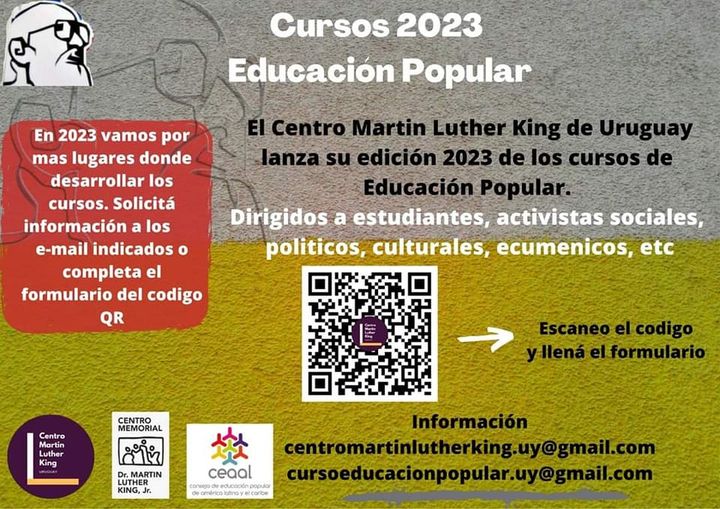 Más información a los correos centromartinlutherking.uy@gmail.com  , cursoeducacionpopular.uy@gmail.com
