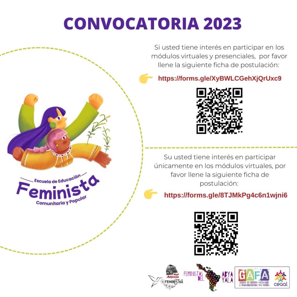 Convocatoria Escuela de Educación Feminista Comunitaria y Popular. GAFA CEAAL. Red Alforja. Feministas del Abya Yala.