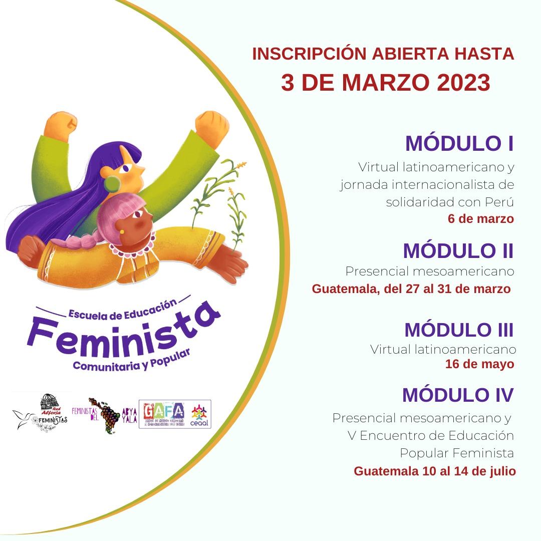 Se les invita a participar en la Escuela de Educación Feminista Comunitaria y Popular.