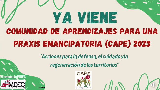 Comunidad de Aprendizajes para una Praxis Emancipatoria (CAPE) 2023. «Acciones para la defensa, el cuidado y la regeneración de los territorios».