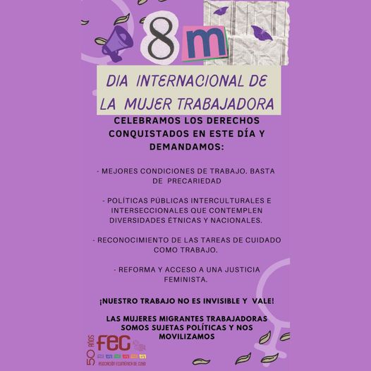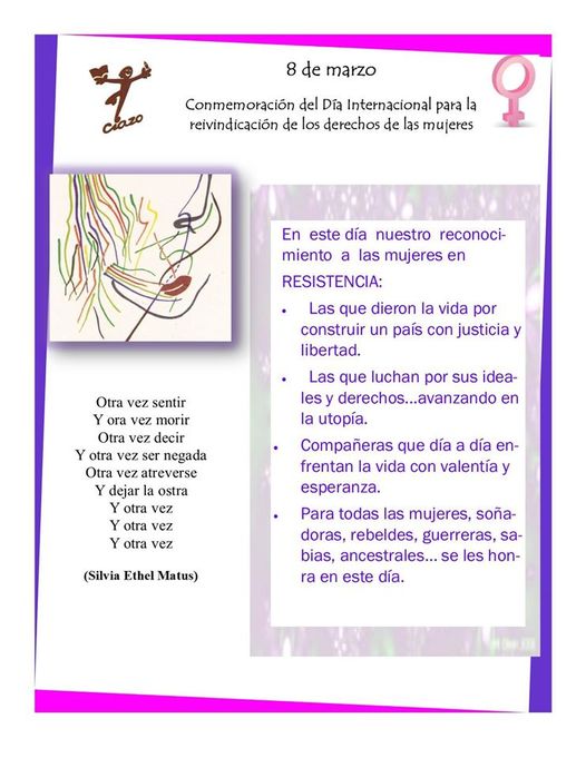 Un enorme saludo sororo para todæs, recordamos que para nosotras el día internacional de las mujeres trabajadoras representa la lucha histórica por nuestros derechos por una vida digna y la oportunidad para seguirnos organizando desde los territorios que habitamos.
