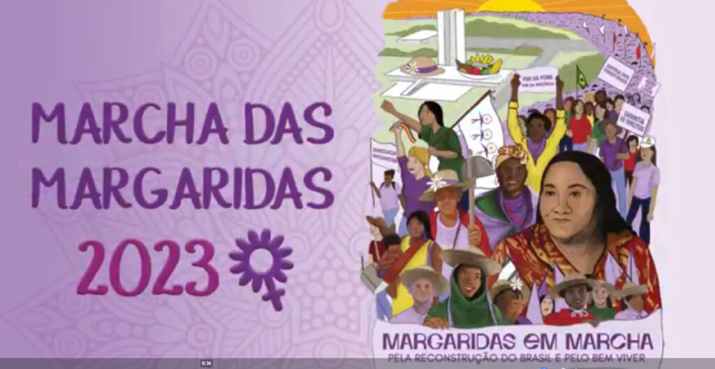 «Neste 8 de março, Dia Internacional de Luta das Mulheres, a CONTAG lança oficialmente o vídeo de chamada da MARCHA DAS MARGARIDAS 2023. As Margaridas seguem em marcha pela reconstrução do Brasil e pelo bem viver e a maior ação política das mulheres da América Latina será realizada nos dias 15 e 16 de agosto desse ano, em Brasília/DF.»