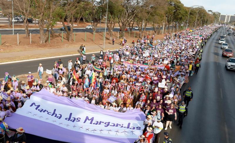 Em seu discurso no encerramento da Marcha das Margaridas, o presidente da CONTAG, Aristides Santos, destacou o sentimento de esperança com os anúncios feitos pelo governo. “Aqui há um sentimento de muita esperança porque o Brasil voltou, o presidente Lula voltou, as mulheres voltaram. Como diz o presidente Lula, nunca antes na história do Brasil tantas mulheres ocuparam ministérios, e ontem foi dada essa demonstração na nossa abertura. Nesses meses já sentimos que a nossa luta e nossa esperança voltou. Mas sabemos que os desafios ainda são muitos, precisamos avançar no combate à fome, na distribuição de renda e na reforma agrária.”