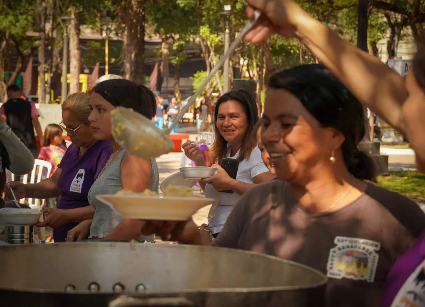 En el marco del proyecto “Control y transparencia en el uso de los recursos públicos desde los comedores y centros comunitarios”, de la organización SAVIA (de #CEAALParaguay), y desde la Articulación de Ollas Populares. PYKUI, con el apoyo de la Fundación CIRD, en el programa “Más ciudadanía, menos corrupción”, el viernes 4 de agosto se realizó la actividad denominada Acción Solidaria. Paraguay contra el Hambre”. en la Plaza Juan E. O´leary, en Asunción, Paraguay