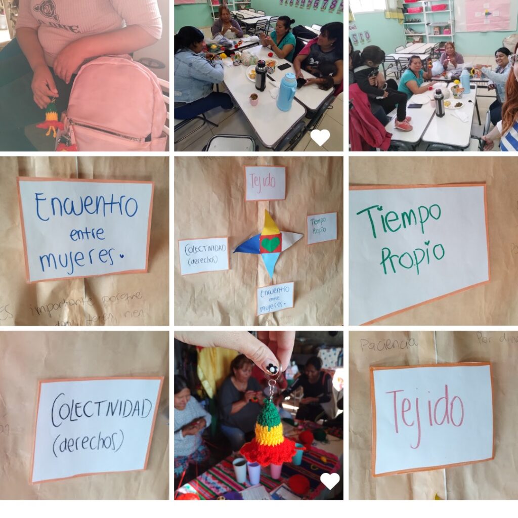 Y de manera colectiva trabajamos a través de la rosa de los vientos sobre los proyectos vitales de las mujeres migrantes. Se propuso pensar en cuatro puntos cardinales: TEJIDO, TIEMPO PROPIO, ENCUENTRO ENTRE MUJERES Y COLECTIVIDAD, que orientaron a revisar nuestras prácticas y acciones del día a día, buscando hacer una analogía sobre el tejer y el devenir de nuestras vidas como mujeres, reafirmando la importancia de ir armando redes entre nosotras y la comunidad