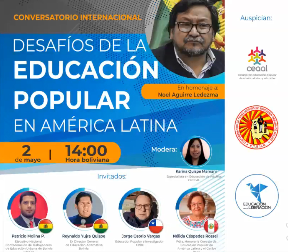 Conversatorio Internacional «Desafíos de la Educación Populara en América Latina». En memoria de Noel Aguirre. CEAAL, CTEUB, EFSRAD y EL