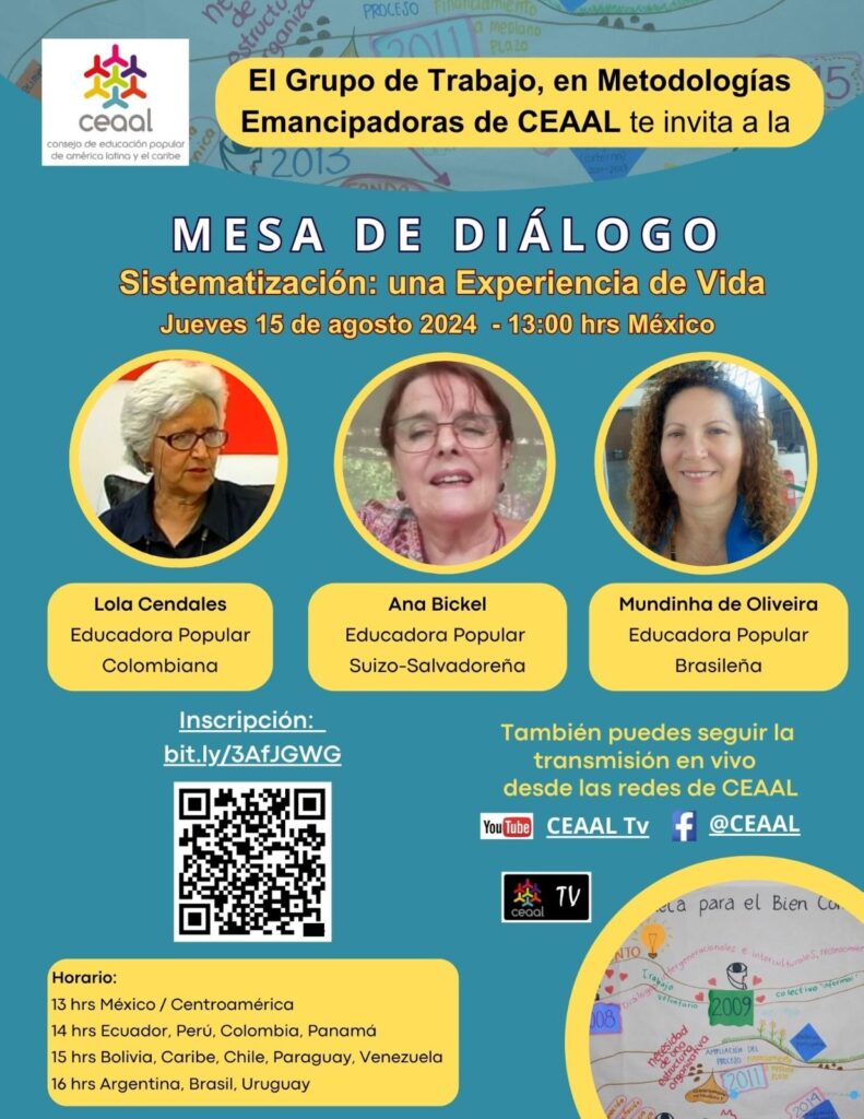 El Grupo de Trabajo en Metodologías Emancipadoras de CEAAL comparte la Mesa de Diálogo «Sistematización: una Experiencia de Vida», realizada este  Jueves 15 de agosto 2024-