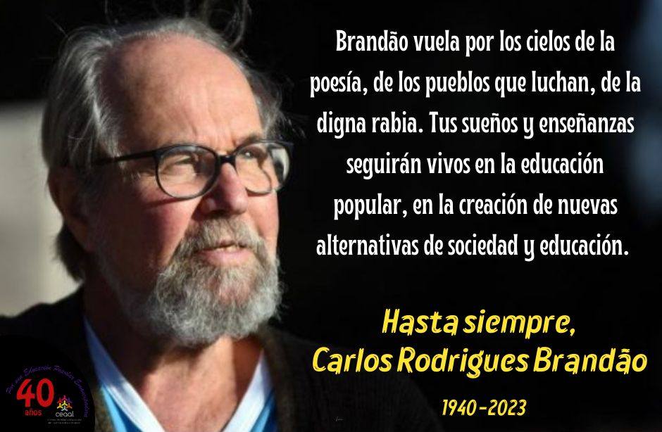 [siteorigin_widget class="WP_Widget_Custom_HTML"][/siteorigin_widget] Brandão vuela por los cielos de la poesía, de los pueblos que luchan, de la digna rabia. Tus sueños y enseñanzas seguirán vivos en la educación popular, en la creación de nuevas alternativas de sociedad y educación. Hasta siempre, Carlos Rodrigues Brandão Consejo de Educación Popular de América Latina y el Caribe