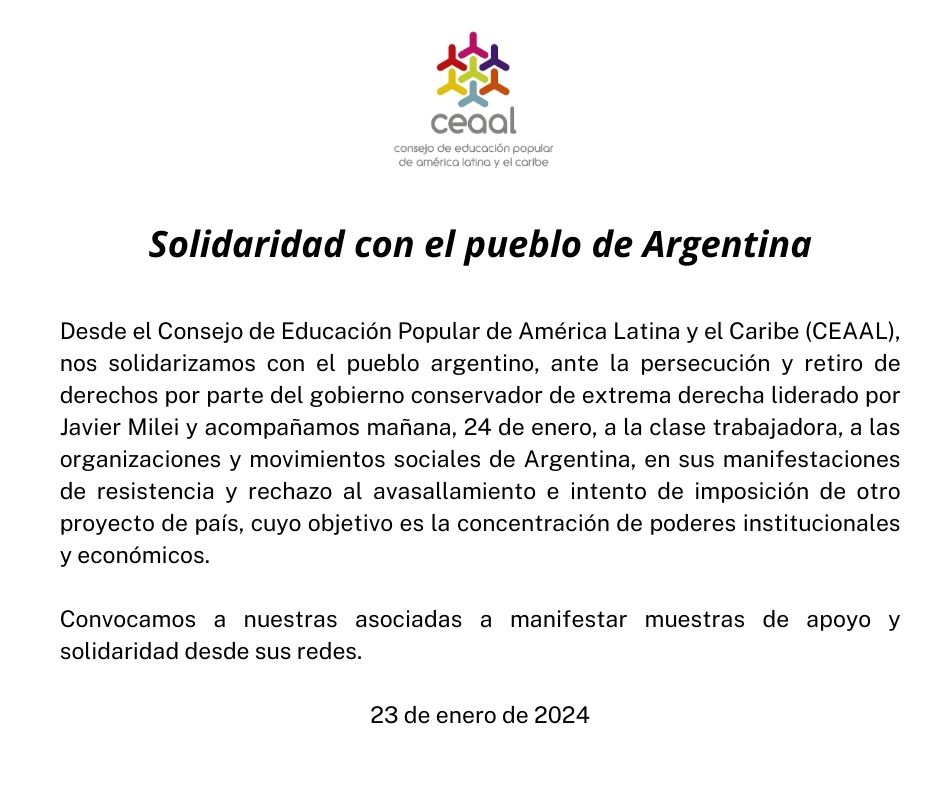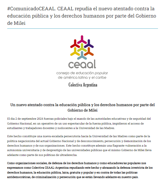#ComunicadoCEAAL. CEAAL repudia el nuevo atentado contra la educación pública y los derechos humanos por parte del Gobierno de Milei