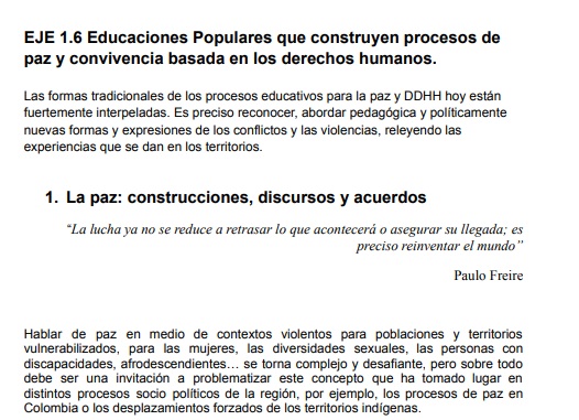 Informe final Eje 6. «Educaciones Populares que construyen procesos de paz y convivencia basada en los derechos humanos». Agosto 2021 #EFP2021CEAAL