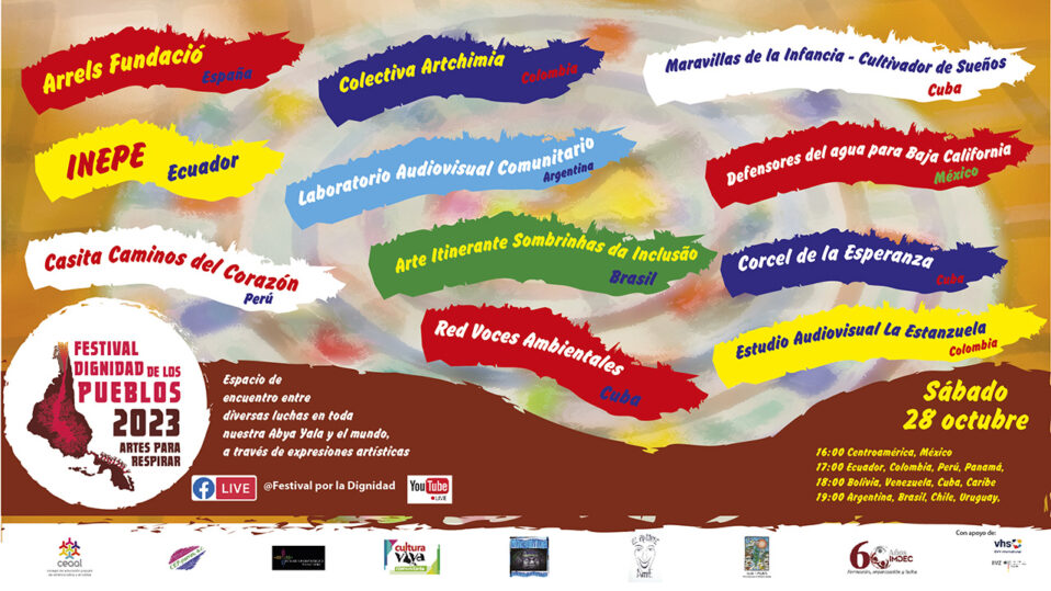 Comunicado de prensa Este sábado 28 de octubre se realizará el Festival de la Dignidad de los Pueblos. Artes para Respirar 2023 Este sábado 28 de octubre se realizará la cuarta edición del Festival de la Dignidad de los Pueblos. Artes para Respirar 2023, el cual reunirá experiencias de países como Colombia, Ecuador, México, Cuba, Colombia, España,…