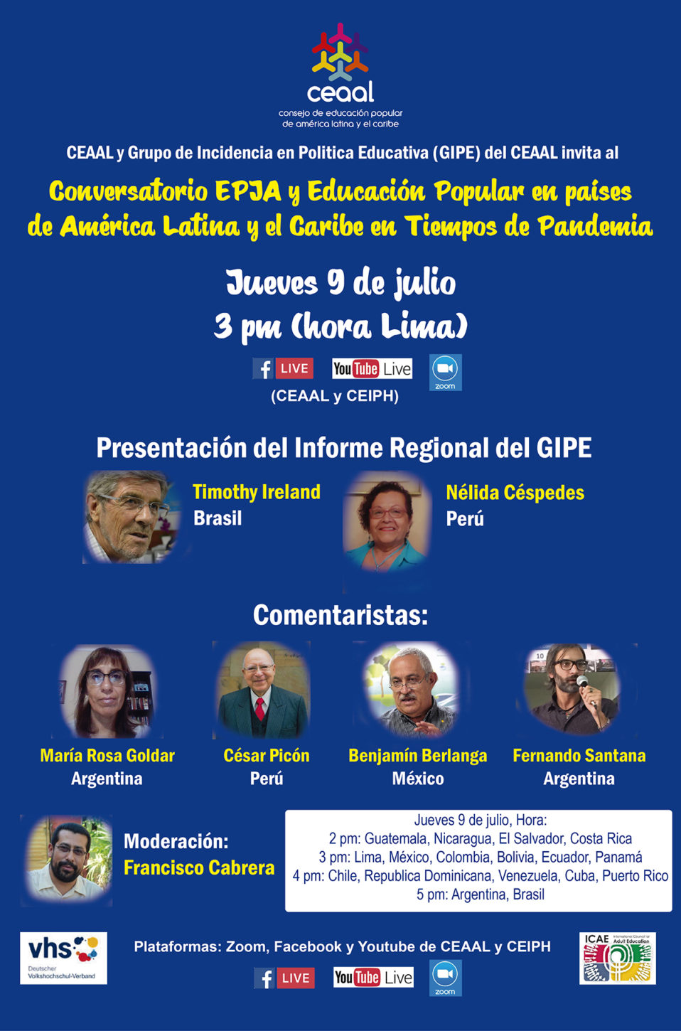 La publicación, “Educación de Personas, Jóvenes, Adultas y Adultas Mayores: Esperanzas,urgencias y apuestas desde la Educación Popular en América Latina y el Caribe”, hasido elaborada por el Grupo de Incidencia en Política Educativa del CEAAL. La edición ypublicación digital es gracias a la colaboración de Raúl Peña de Impresión Arte Perú S.A.C.Responsables de producción:Miriam Camilo Recio (República Dominicana), Nélida Céspedes…