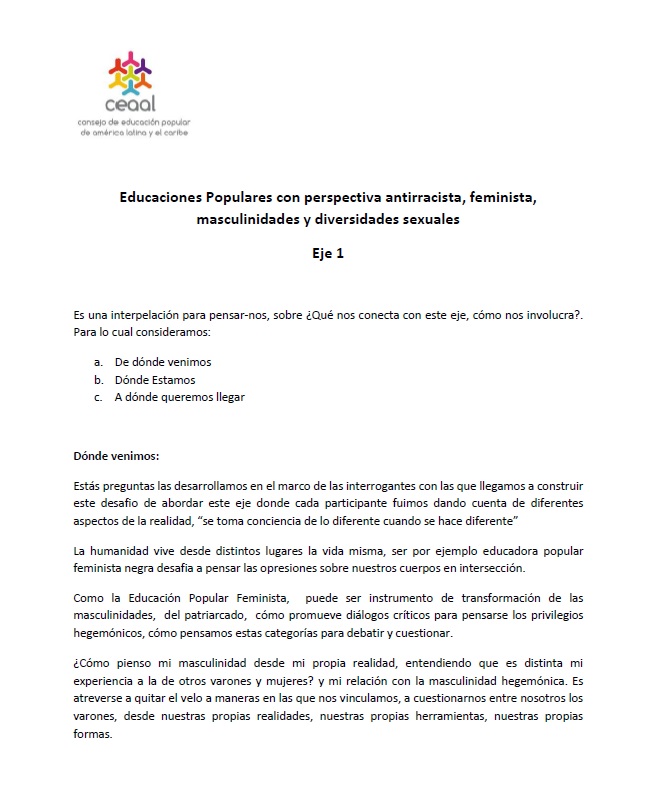 Documento Informe Final del Eje 1 «Educaciones Populares con perspectiva antirracista, feminista, masculinidades y diversidades sexuales». Agosto 2021 #EFP2021CEAAL