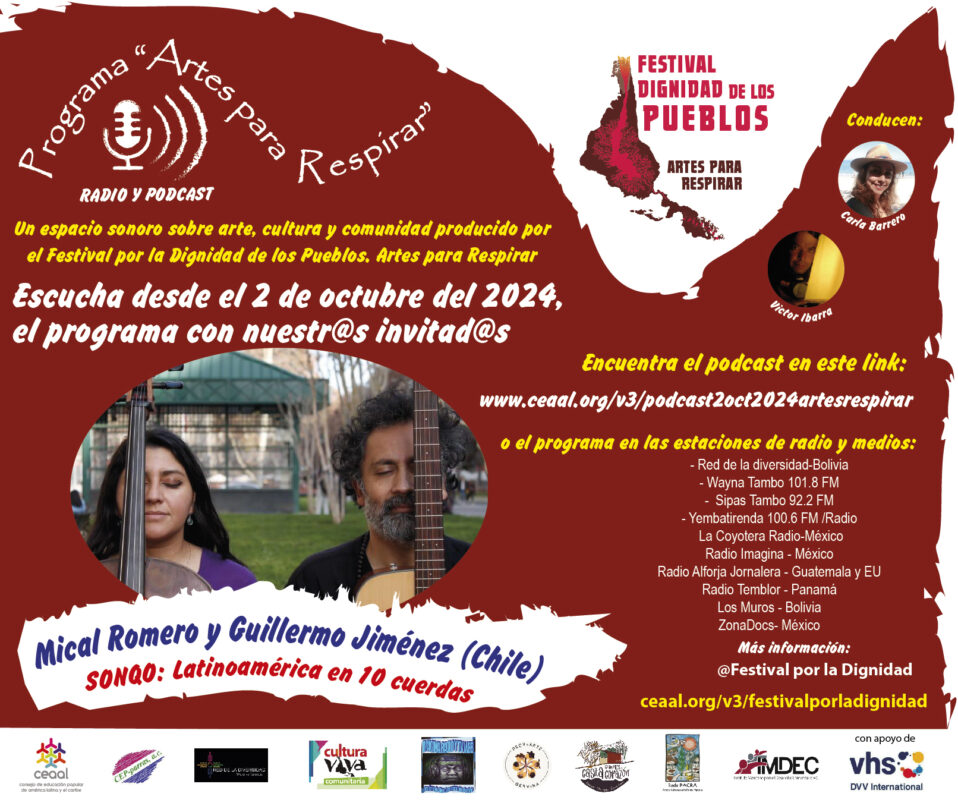 [siteorigin_widget class="Spacer_Widget"][/siteorigin_widget][siteorigin_widget class="WP_Widget_Media_Audio"][/siteorigin_widget][siteorigin_widget class="Spacer_Widget"][/siteorigin_widget] Escucha este programa de radio y podcast "Artes para Respirar" del miércoles 12 de marzo 2025, un espacio sonoro sobre arte, cultura y comunidad, producido por el Colectivo del Festival por la Dignidad de los Pueblos. Artes para Respirar . En esta emisión, realizada y conducida por Carla Barrero (Bolivia) y Víctor Ibarra (México), con la apertura…