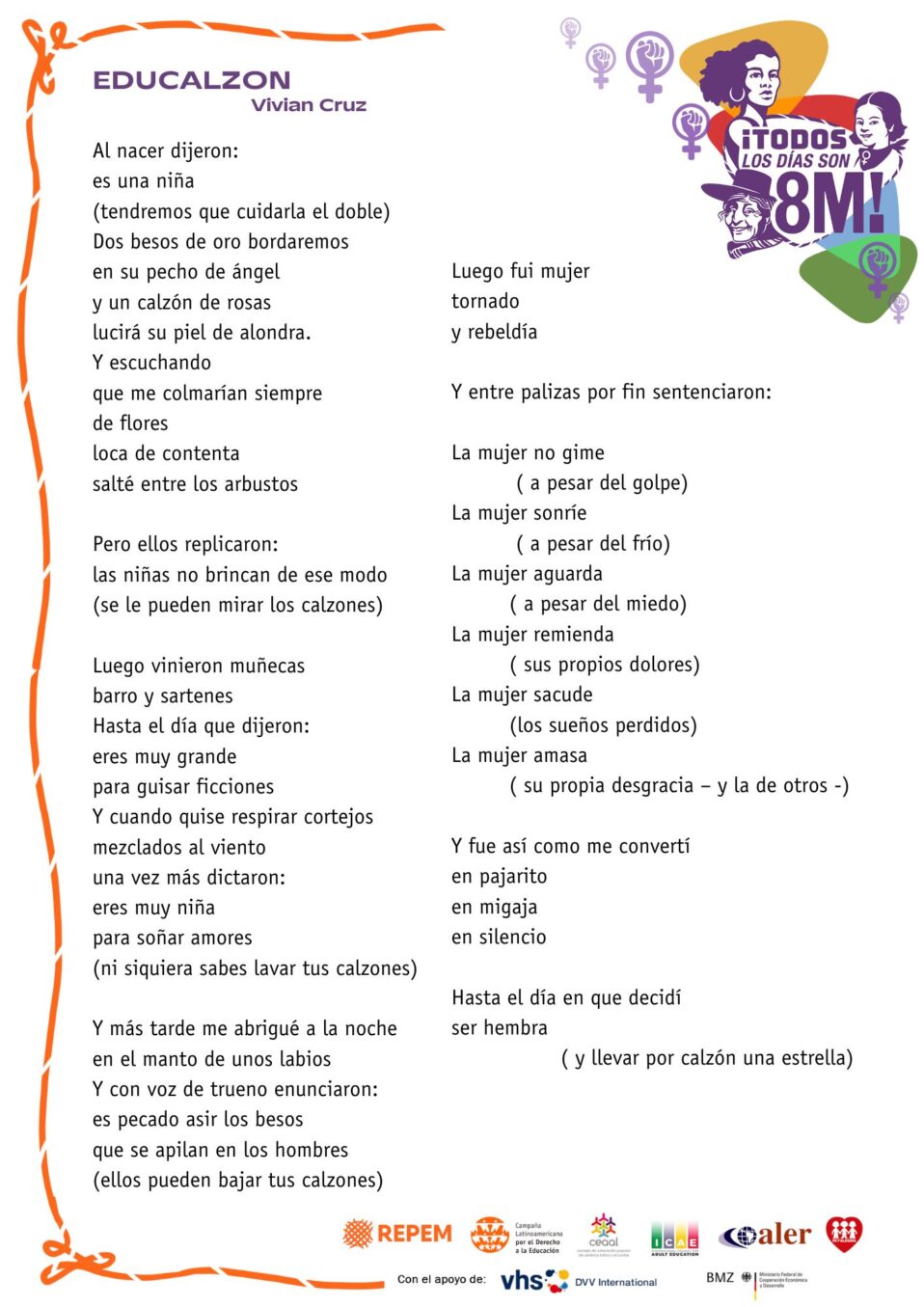 [siteorigin_widget class="WP_Widget_Custom_HTML"][/siteorigin_widget] Conversatorio virtual "Cuidando los derechos de las mujeres: trabajo digno y educación" #TodosLosDíasSon8M Convoca: Plataforma de redes regionales por la EPJA Fecha: 07 de Marzo de 2024