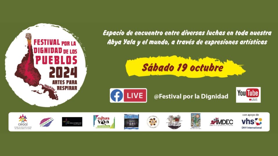 [siteorigin_widget class="WP_Widget_Custom_HTML"][/siteorigin_widget] Este sábado 19 de octubre se realiza la Quinta edición del Festival de la Dignidad de los Pueblos. Artes para Respirar 2024 , que a través del arte y la cultura diversos colectivos, organzaciones, comunidades o pueblos comparten sus luchas, apuestas y propuestas. En esta ocasión participarán 13 experiencias de países como Brasil, Chile, Cuba, El Salvador, México…