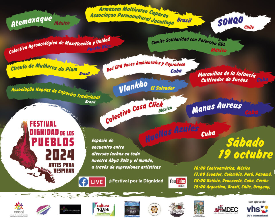#Transmisión #EnVivo Sábado 19 de octubre, de la Quinta edición del Festival de la Dignidad de los Pueblos. Artes para Respirar 2024
