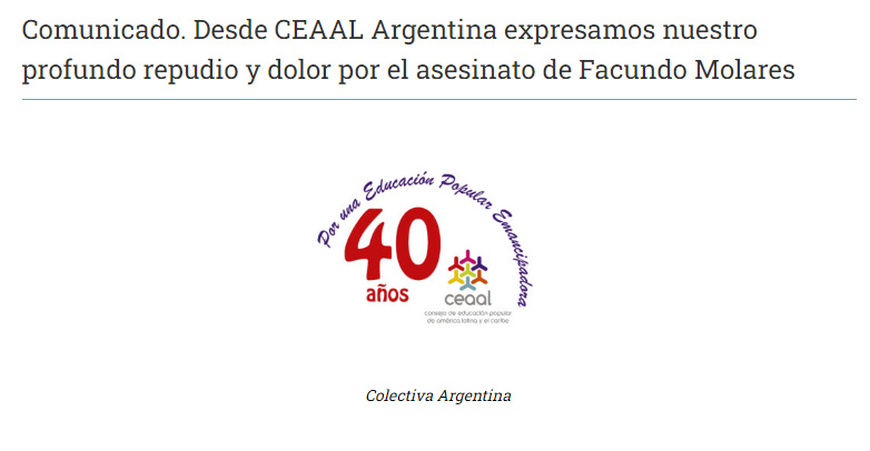 Desde CEAAL Argentina expresamos nuestro profundo repudio y dolor por el asesinato de Facundo Molares