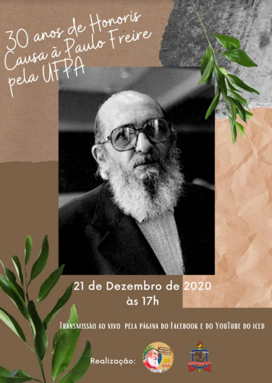 Celebração dos 30 anos de honoris causa à Paulo Freire pela Universidade Federal do Pará, no dia 21/12/2020, Às 17h.