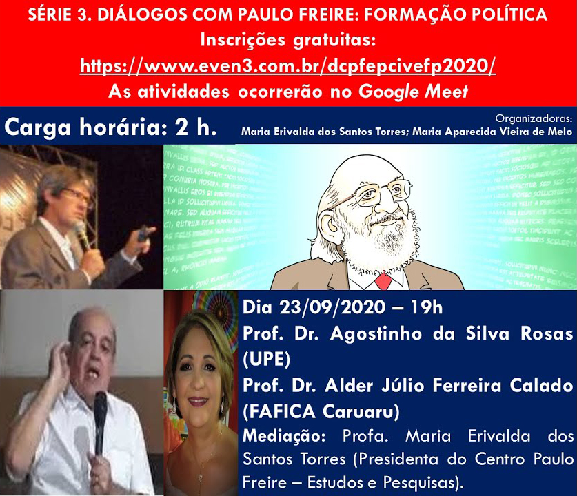 Mediadora: Maria Erivalda dos Santos Torres – Link do Currículo Lattes: http://lattes.cnpq.br/5577041654762304 (Presidenta do Centro Paulo Freire – Estudos e Pesquisas)