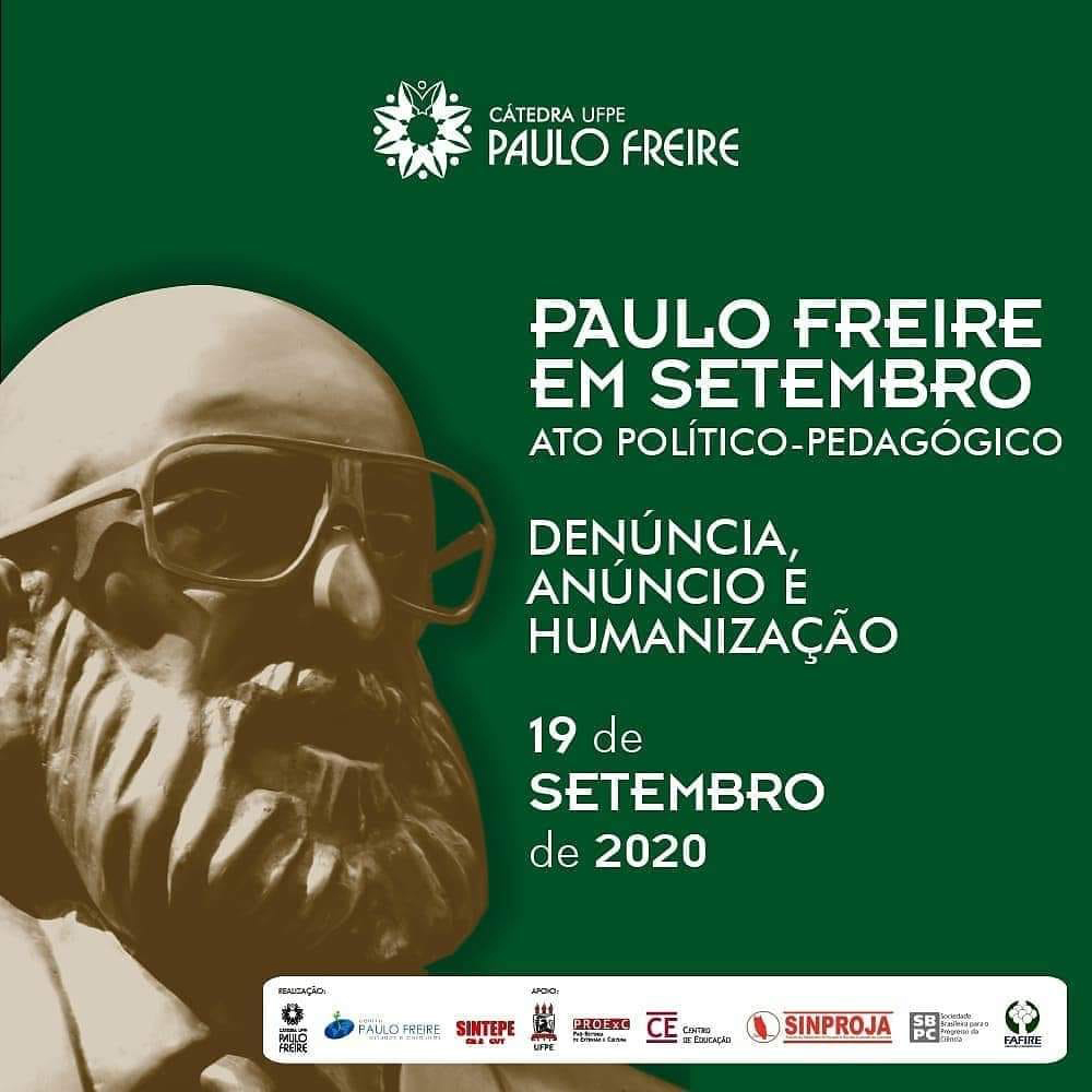 PAULO FREIRE EM SETEMBRO | ATO POLÍTICO PEDAGÓGICO é uma atividade anual da Cátedra Paulo Freire/UFPE, promovida conjuntamente com o Centro Paulo Freire – Estudos e Pesquisas e o Sindicato dos Trabalhadores da Educação de Pernambuco/SINTEPE, apoiado por um conjunto de sujeitos institucionais, criada em 2013 para homenagear Paulo Freire na data do seu nascimento, 19 de setembro.