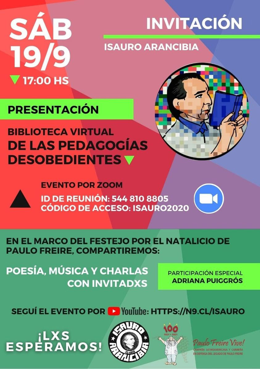 Desde la Escuela Isauro Arancibia, trabajamos para construir colectivamente una trama que nos permita impulsar el reconocimiento de una nueva educación liberadora para la Patria Grande, que tenga en su centro a los sujetos pedagógicos. Una trama que se inscribe en una pedagogía soberana, viva, crítica, emancipadora y acciona necesariamente desde la desobediencia a la rigidez del sistema educativo.