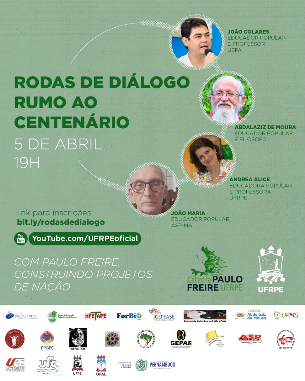 A iniciativa contempla um conjunto de 10 rodas, sendo a primeira delas destinada ao debate acerca das relações entre o pensamento Freireano e os Projetos de Nação, el 5 de abril 2021.