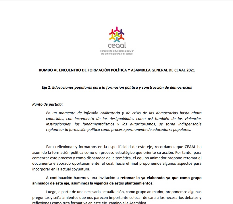 Compartimos link del documento completo: https://ceaal.org/docs/2021/asambleaefpCEAAL2021/docasamblea/DocumentoEje2EFP-FormacionPolitica3Version.pdf