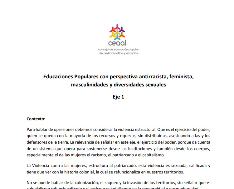 Documento Informe Final del Eje 1 «Educaciones Populares con perspectiva antirracista, feminista, masculinidades y diversidades sexuales». Agosto 2021 #EFP2021CEAAL