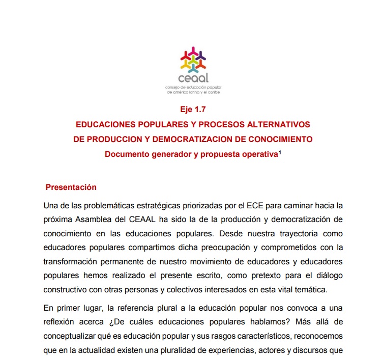 Documento generador Eje 7 «Educaciones Populares y procesos alternativos de producción y democratización del conocimiento.» Abril 2021. #EFPCEAAL2021