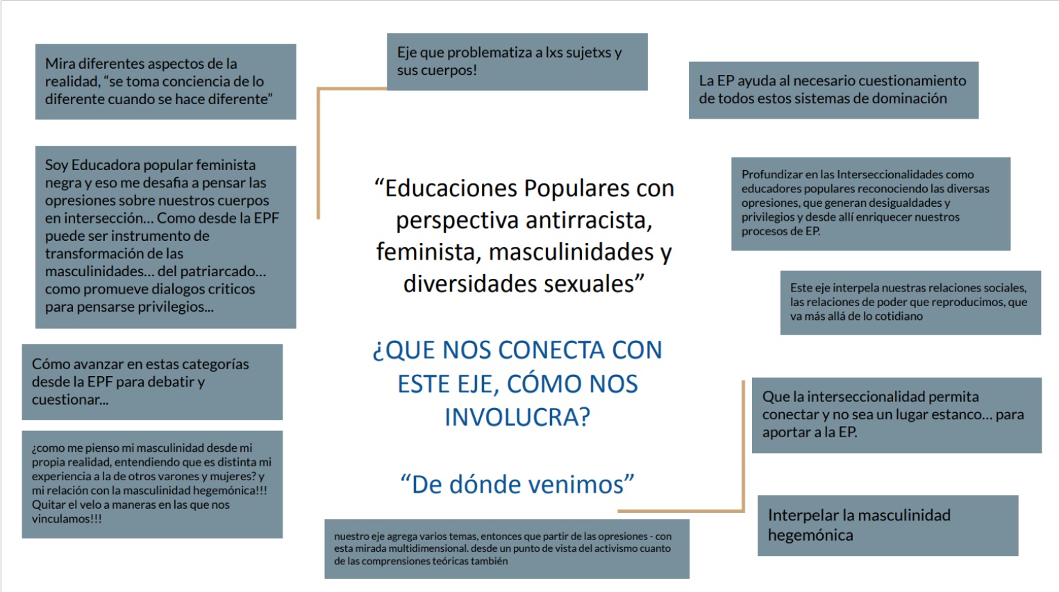 Presentación compartidao por el Eje 1 «Educaciones Populares con perspectiva antirracista, feminista, masculinidades y diversidades sexuales», en reunión realizada el 18 y 19 de junio por el Equipo de Coordinación Estratégica Ampliada. (ECE-A).
