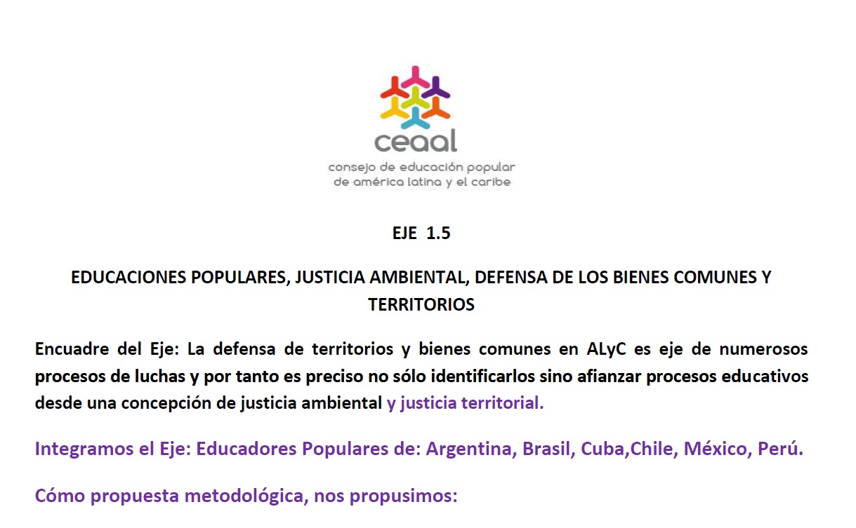 Presentación compartida por el Eje 5 «Educación Populares, Justicia Ambiental, Defensa de los Bienes Comunes y Territorios» del EFP CEAAL, en reunión realizada el 18 y 19 de junio por el Equipo de Coordinación Estratégica Ampliada. (ECE-A).
