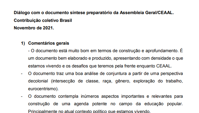 Contribuciones de CEAAL Brasil al Documento Síntesis de los 9 Ejes. #EFP2021CEAAL