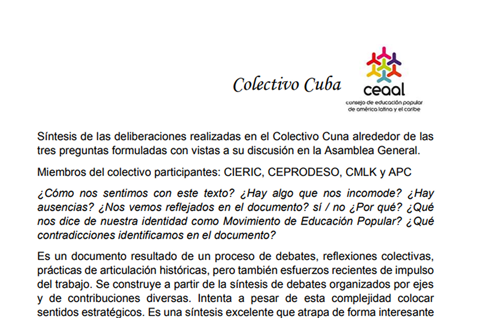 Contribuciones del Colectivo CEAAL Cuba al documento síntesis de CEAAL. #EFP2021CEAAL por Comunicación CEAAL Comunicación CEAAL 17 noviembre, 2021 Leave a comment on Contribuciones del Colectivo CEAAL Cuba al documento síntesis de CEAAL. #EFP2021CEAAL [siteorigin_widget class=»SiteOrigin_Widget_Button_Widget»][/siteorigin_widget] [siteorigin_widget class=»WP_Widget_Custom_HTML»][/siteorigin_widget] Comunicación CEAAL Ver contenido de Comunicación CEAAL