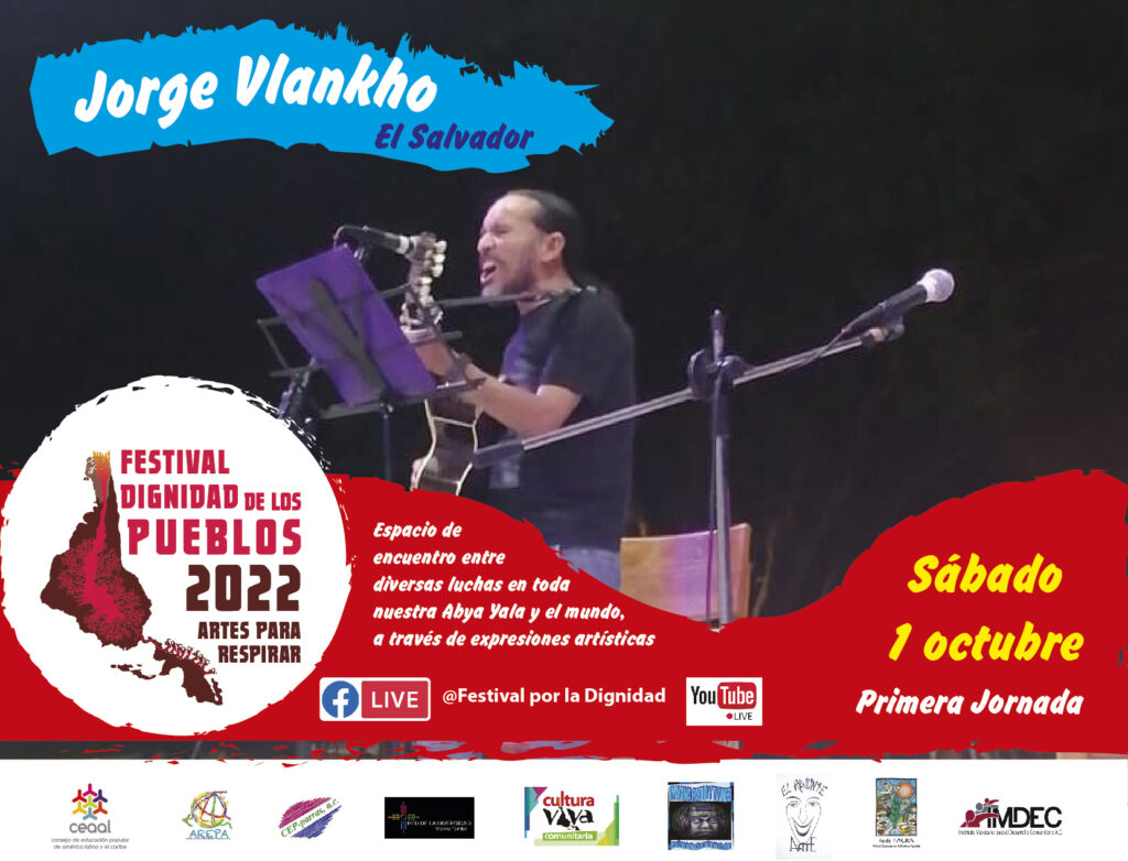 Jorge Vlankho es actor de teatro, cantautor e intérprete. Colabora musical y culturalmente en actividades de la Red de Centros Culturales del Centro Histórico de San Salvador, ONGs y Centros Educativos. Los temas de los que tratan sus canciones son pueblos indígenas, soberanía alimentaria, defensa contra el extractivismo, comercio justo.