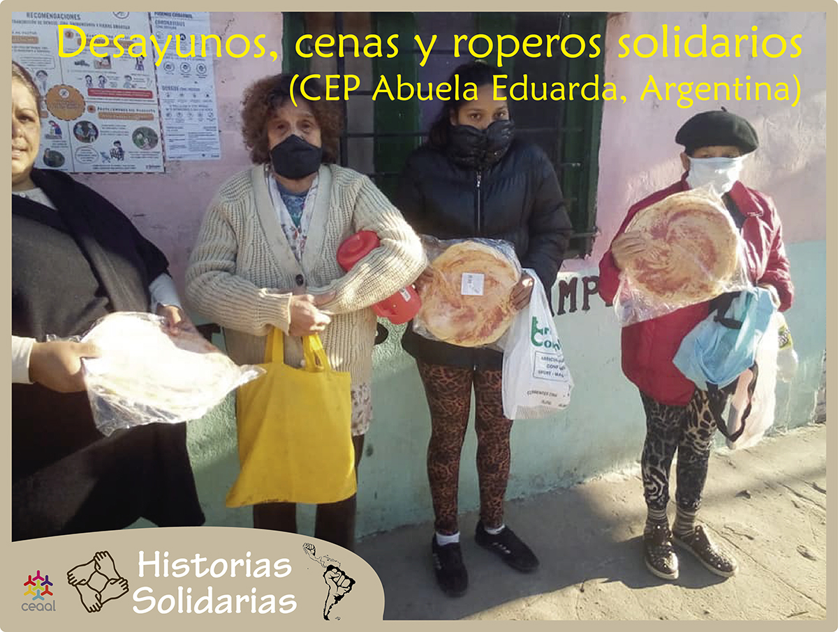 A través del programa de radio “Organizaciones cuidando”, compartimos la historia del Centro Educativo Popular Abuela Eduarda de Villa Itati, Quilmes, Argentina, donde narran la acciones solidarias que sea están realizando durante esta pandemia, tales como ollas populares, desayunos y cenas solidarias, así como el llamado “roperito solidario”.