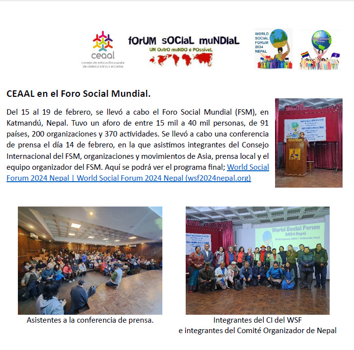 #CEAALenFSM2024. Informe CEAAL en el Foro Social Mundial 2024