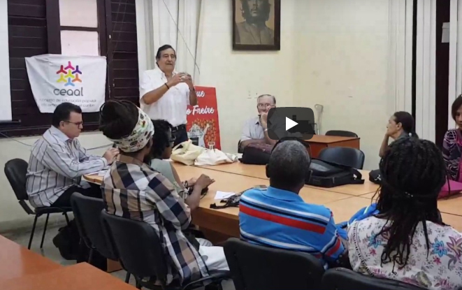 Diálogo de Óscar Jara, acompañado de Carlos Delgado de la Universidad de la Habana, el día 6 de febrero del 2020. Diálogo realizado en el marco de la reunión del Equipo de Coordinación Estratégica de América Latina y el Caribe – CEAAL.