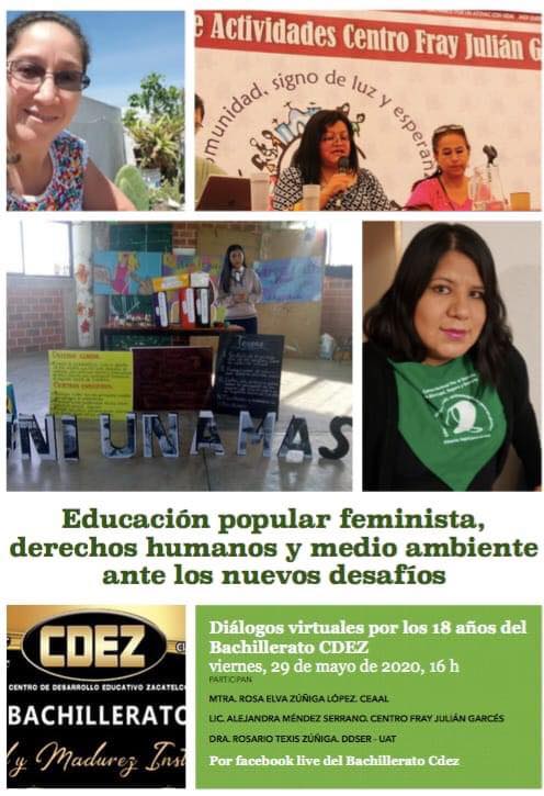 Diálogos virtuales por los 18 años del proyecto del CDEZ, que se llevó a cabo el viernes 29 de mayo, a las 16:00 horas, a través de Facebook de Bachillerato Cdez.
