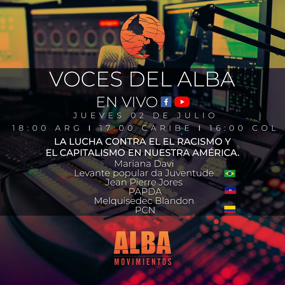 Diálogo «La lucha contra el racismo y el capitalismo en Nuestra América», en el programa de radio Voces del Alba, de Alba Movimientos, se realizó el 2 de julio.
