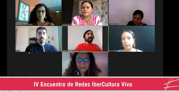 Layly Castillo Lucena (Costa Rica), de la Asociación Masaya; Rocio Orozco (México), del Colectivo CulturAula; Camilo Álvarez (Uruguay) (de CEAAL Uruguay), del SOCAT (Servicio de Orientación, Consulta y Articulación Territorial). Moderador: Guillermo Valdizán Guerrero (Perú), coordinador del programa Puntos de Cultura del Perú.