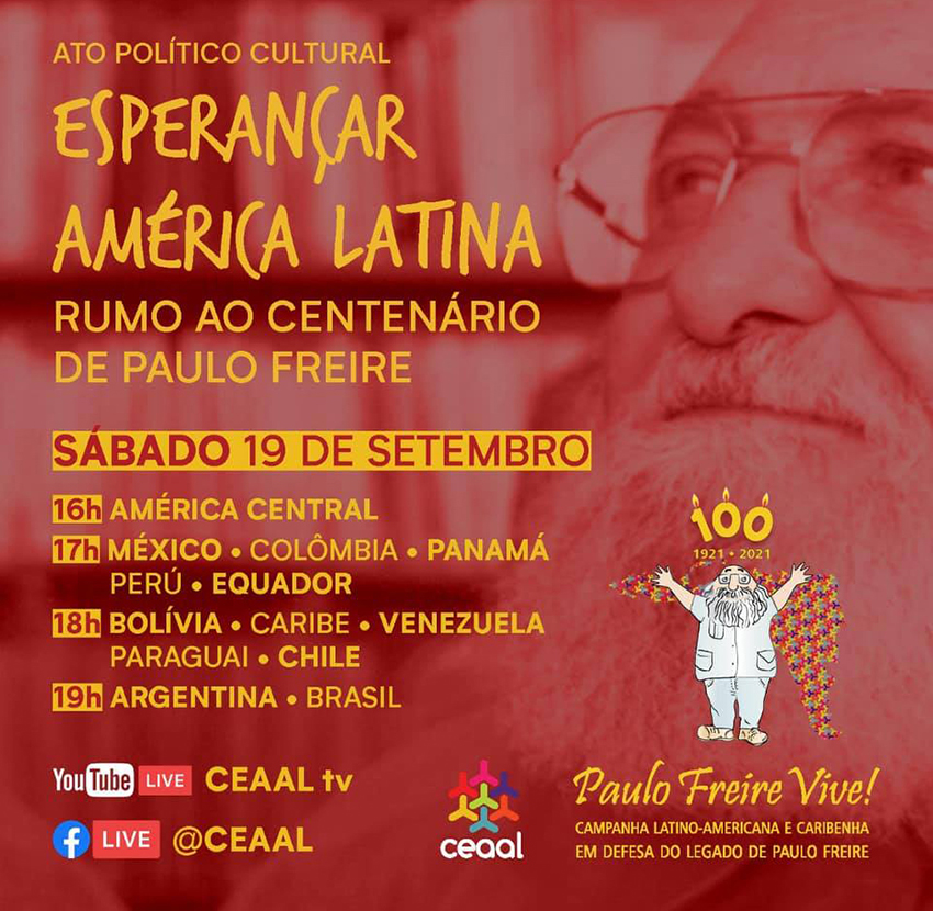 El Acto Político Cultural Esperanzar Latinoamérica forma parte de la Campaña Latinoamericana y Caribeña en Defensa del Legado de Paulo Freire, organizada por CEAAL en alianza con diversos movimientos sociales y colectivos y lanzada en julio de 2019 como una forma de contrarrestar la ofensiva ideológica contra el pensamiento crítico y las ideas de Paulo Freire y defender su legado.