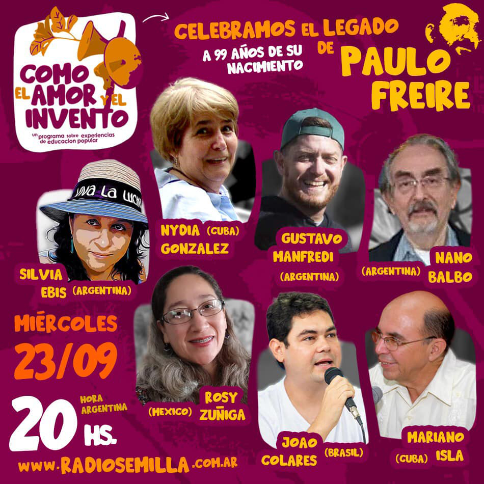 El miércoles 23 de septiembre se llevó a cabo el programa «Como el amor y el invento», donde se «celebró el legado de Paulo Freire a 99 años de su nacimiento», con testimonios de: