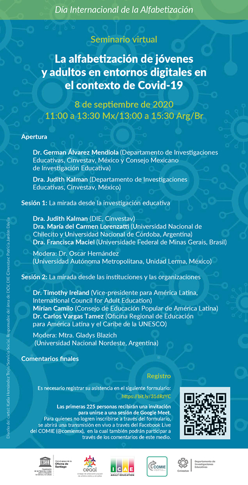 El seminario virtual: «La alfabetización de Jóvenes y adultos en entornos digitales en el contexto de COVID-19», se llevó a cabo el 8 de septiembre.